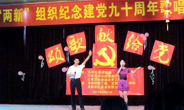 6月21日上午,“頌歌獻給黨”——天河區(qū)“兩新組織”紀念建黨九十周年歌唱比賽在龍洞街文化站如期舉行。